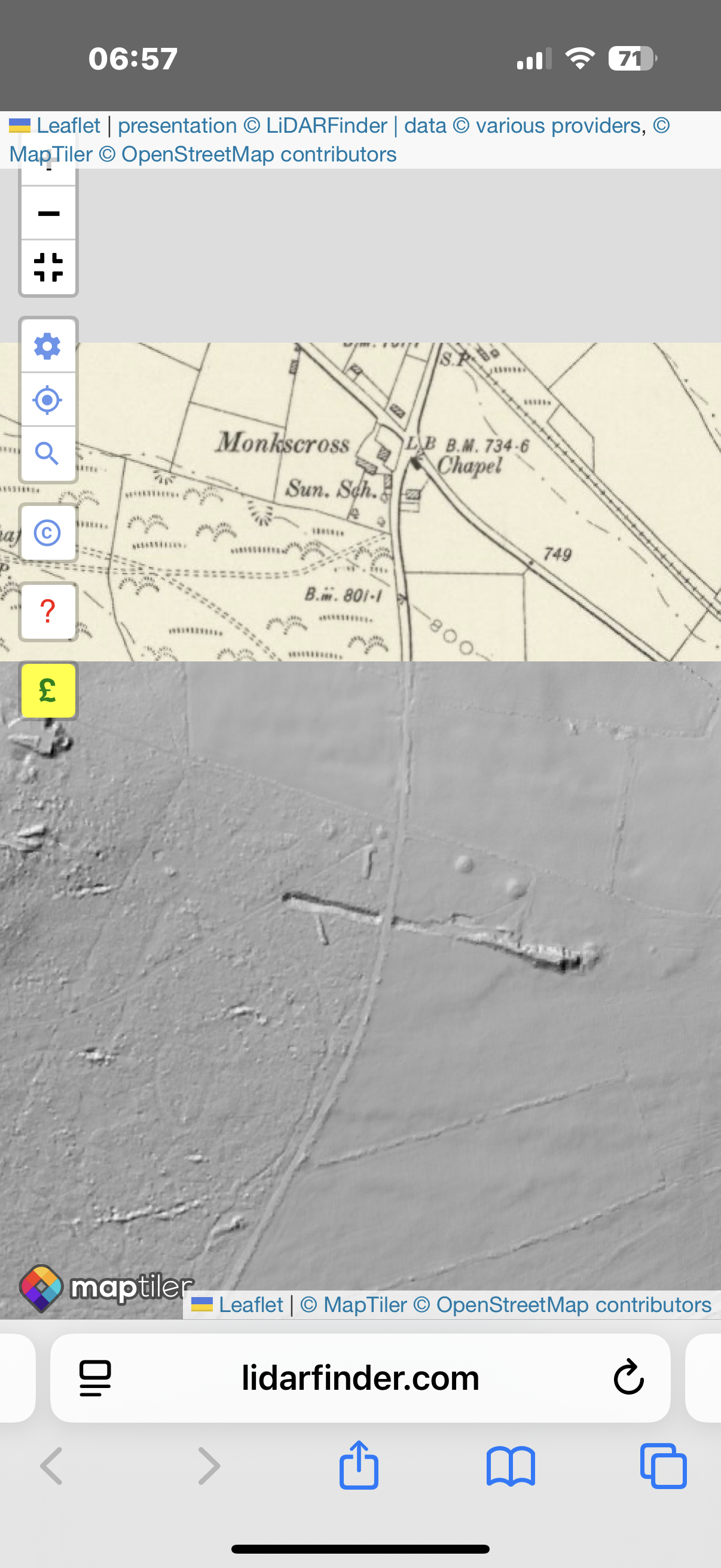 Screenshot created by author from LiDARFinder using Environment Agency LiDAR data (Dowling, 2026).